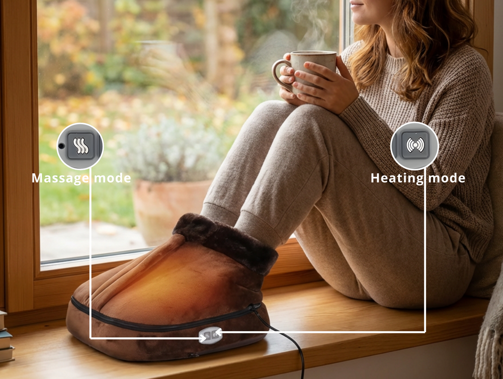 This foot warmer–massager is designed to adapt perfectly to your needs: choose between 1 soothing heat level and 2 massage modes, and enjoy them individually or simultaneously for a fully customized comfort experience.